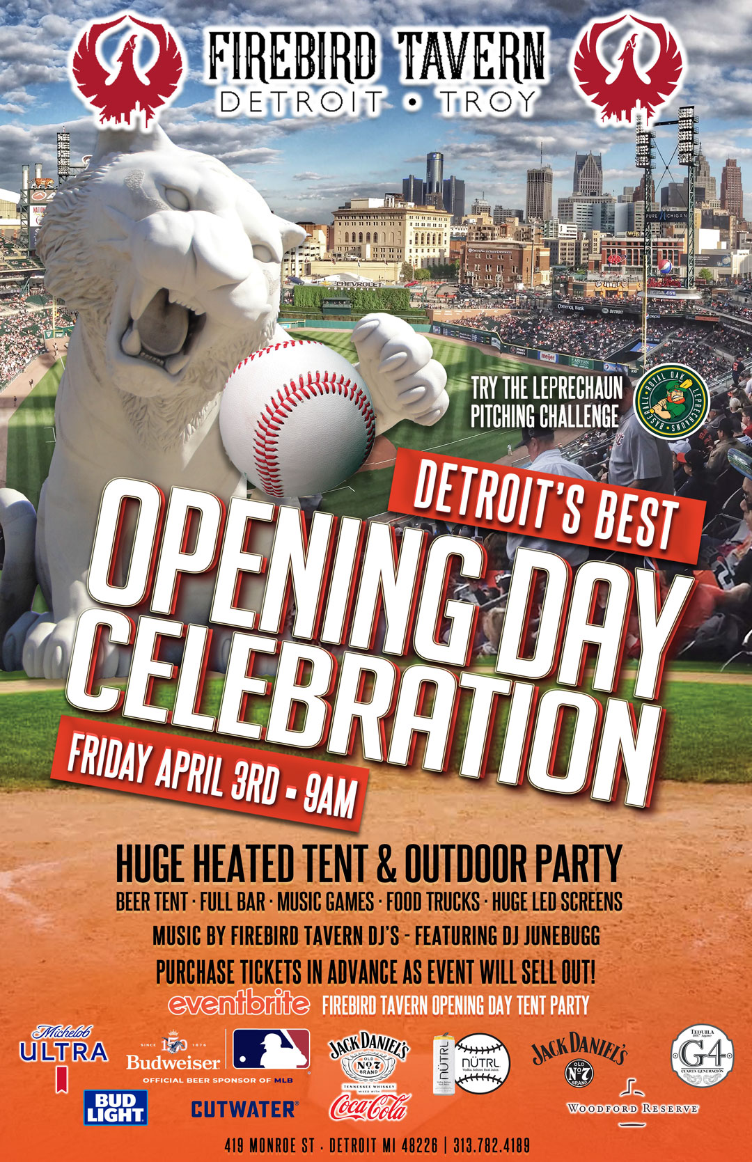 Help the Tigers kick off the season with a bang! We’ll once again be having a massive parking lot party downtown at Firebird Tavern – complete with Firebird Tavern DJ’s live and plenty of adult beverages.